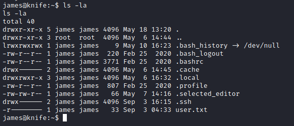 E dentro do diretório do usuário “james”, conseguimos flag do usuário.