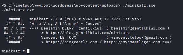 ## \ / ## > https://blog.gentilkiwi.com/mimikatz