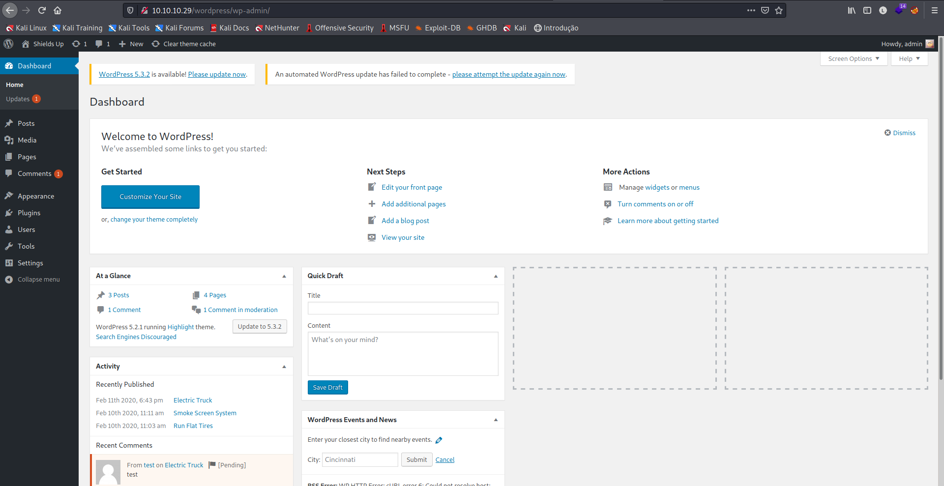 O Wordpress também roda em PHP, o que nos dá brecha para tentarmos um acesso remoto editando alguma página com um payload.