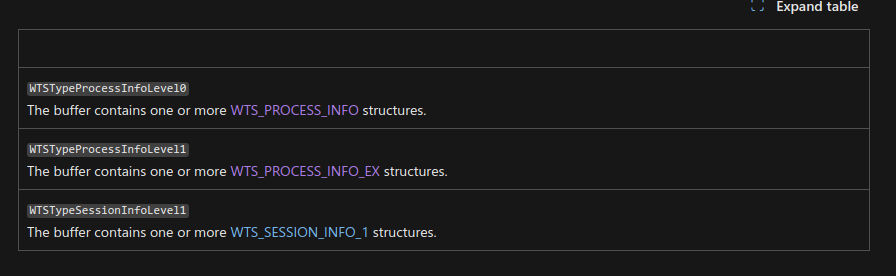 - https://learn.microsoft.com/en-us/windows/win32/api/wtsapi32/ns-wtsapi32-wts_process_info_exa