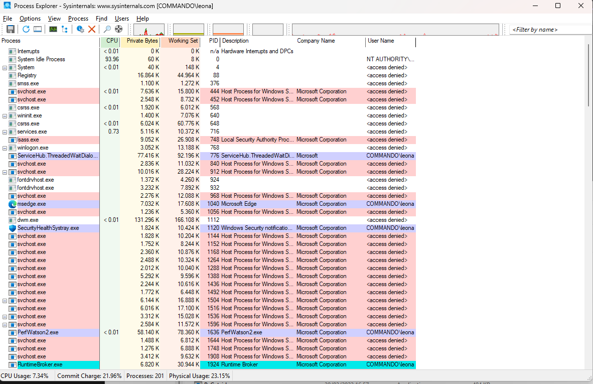 Em ambientes Windows, independentemente do objetivo de um artefato malicioso em execução, seja ele elevação de privilégios, persistência, movimentação lateral, evasão de defesas, entre outros, um dos primeiros passos críticos para o sucesso de qualquer operação é o reconhecimento completo de tudo que está em execução no sistema. Este reconhecimento vai além da simples descoberta dos nomes dos processos e serviços ativos; envolve a obtenção de informações detalhadas sobre o contexto de execução de cada processo, como seu PID, o usuário associado e o nível de privilégio em que opera. A capacidade de coletar o máximo de informações possíveis desde o início é fundamental para uma compreensão abrangente do ambiente, permitindo uma análise mais precisa e tomada de decisões informadas.