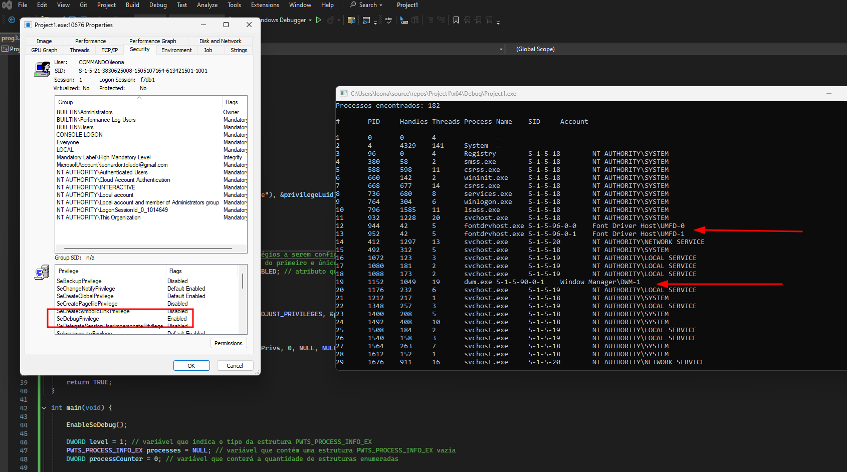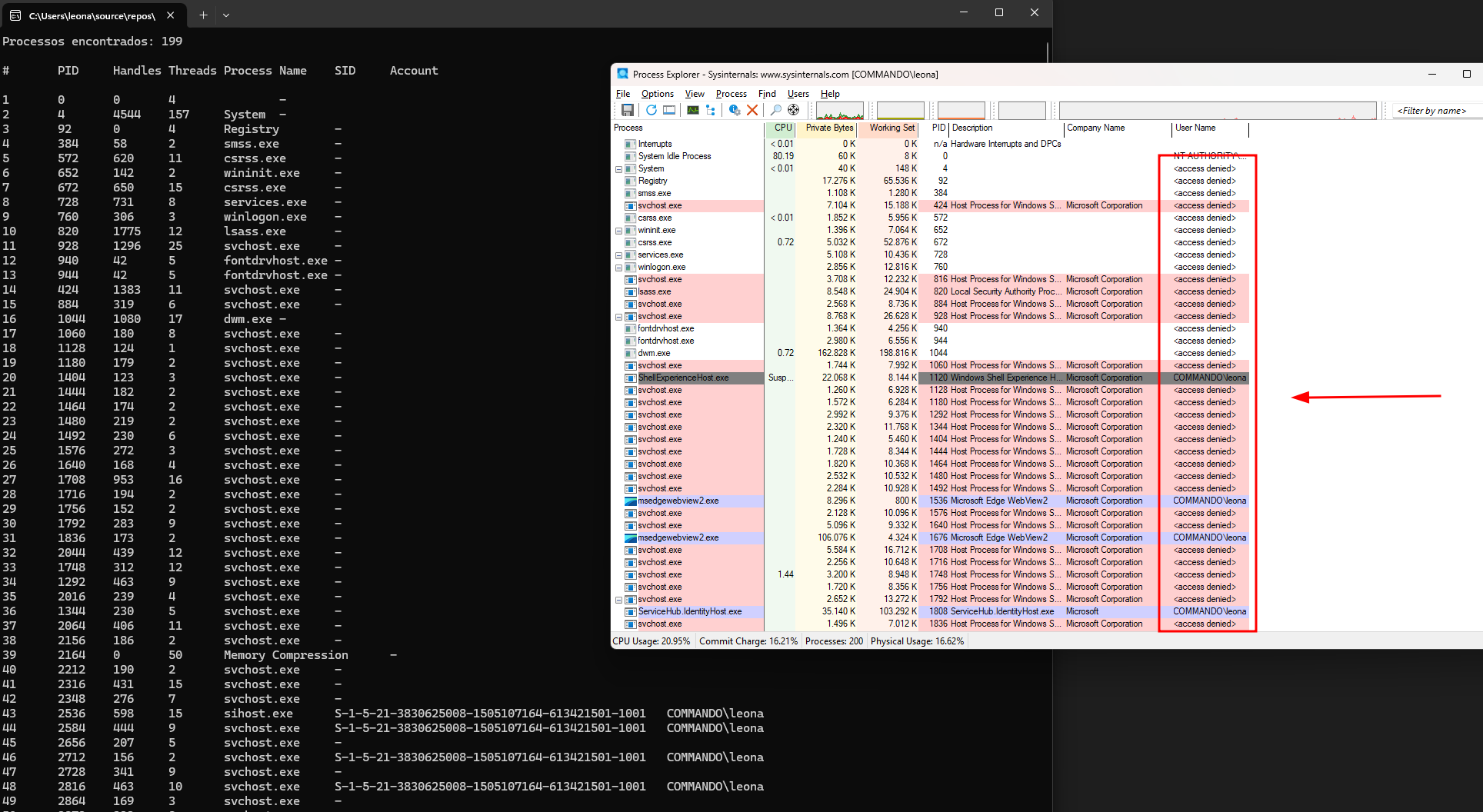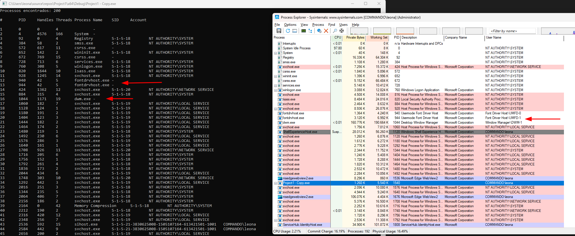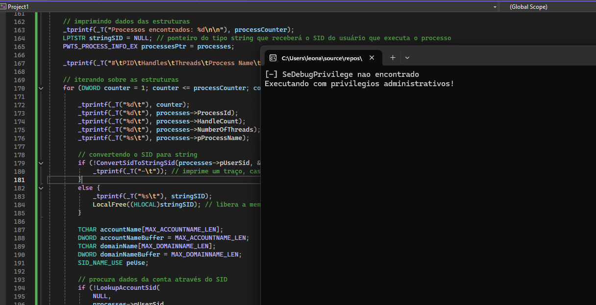 Porém, assim como a API WTSEnumerateProcessesEx, ela exige o privilégio SeDebugPrivilege para enumerar processos de privilégio elevado.