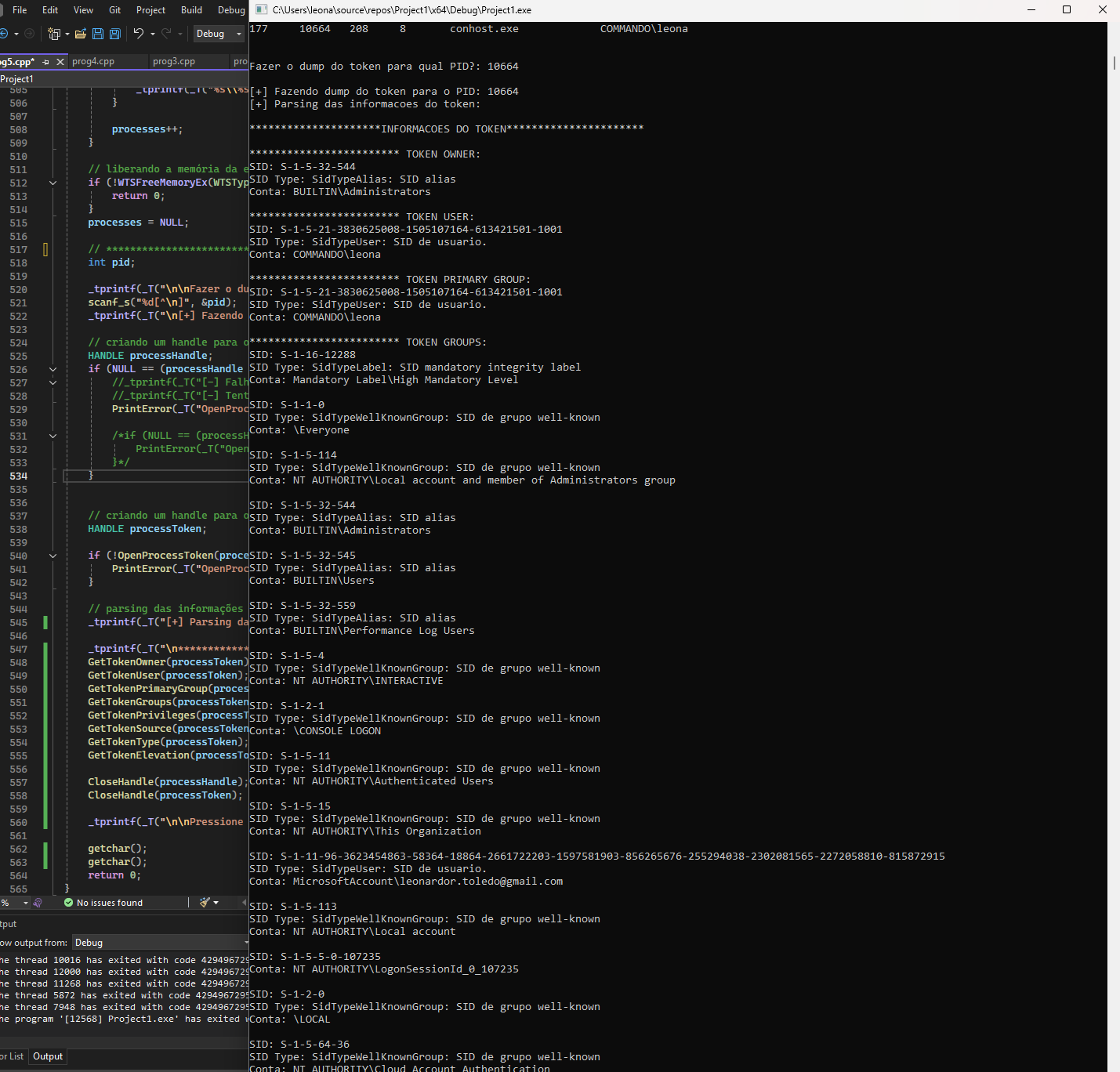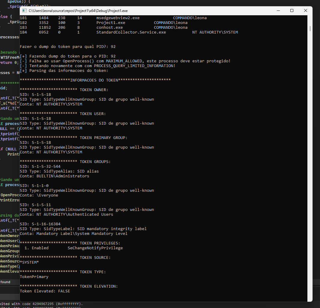 Neste artigo, exploramos diversas técnicas para listagem de processos e token dumping utilizando APIs do Windows, destacando a flexibilidade e o poder dessas abordagens no contexto de exploração e análise de sistemas. Através do uso de funções como WTSEnumerateProcessesEx e outros métodos abordados, vimos como é possível obter informações detalhadas sobre os processos em execução em um ambiente Windows, identificando não apenas o contexto em que eles operam, mas também as permissões associadas e os tokens de segurança em uso.