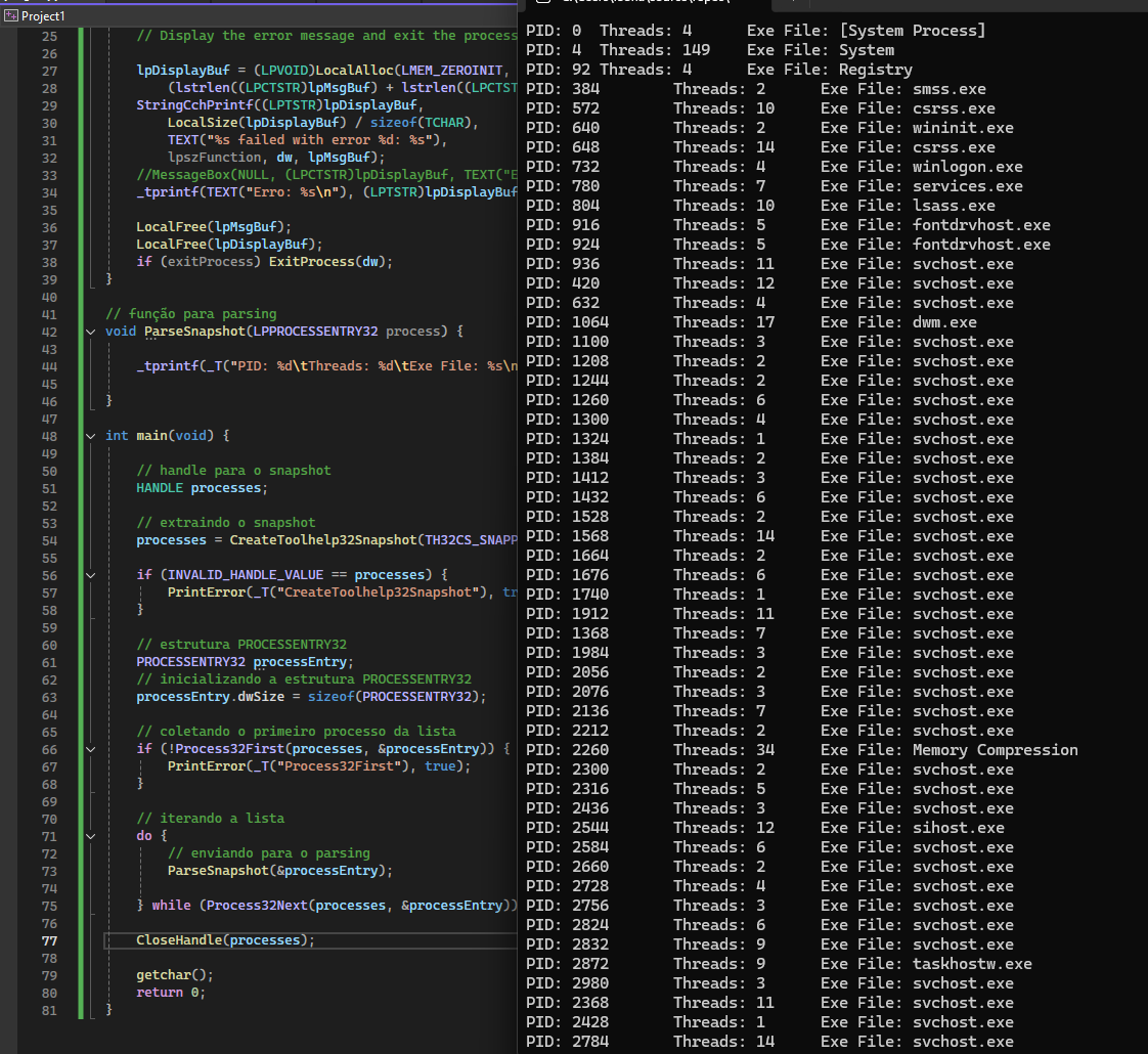 Tecnicamente é uma função simples, com uma resposta simples, porém, como já vimos durante este artigo, saber o PID de um processo é essencial no process listing, pois, uma vez que temos este valor, podemos utilizar várias outras funções de API para trazer informações relevantes.