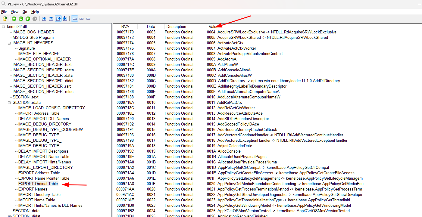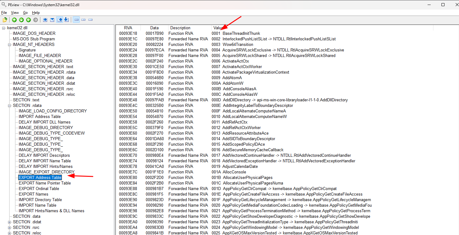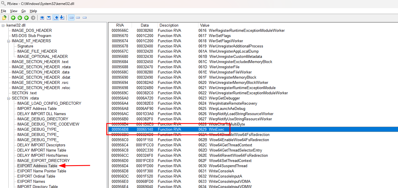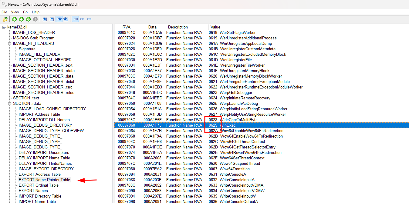 A investigação aprofundada da estrutura interna da DLL kernel32.dll permitiu a identificação e utilização de funções críticas como WinExec(). Por meio de uma análise detalhada, foi demonstrado como localizar os RVAs (Relative Virtual Addresses) das funções e aplicar essas técnicas na criação de shellcodes robustos e eficazes.