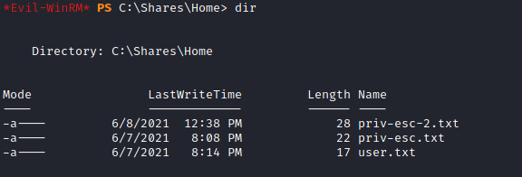 No diretório C:\Shares\Home> encontramos todas as duas hashes de usuários privilegiados.