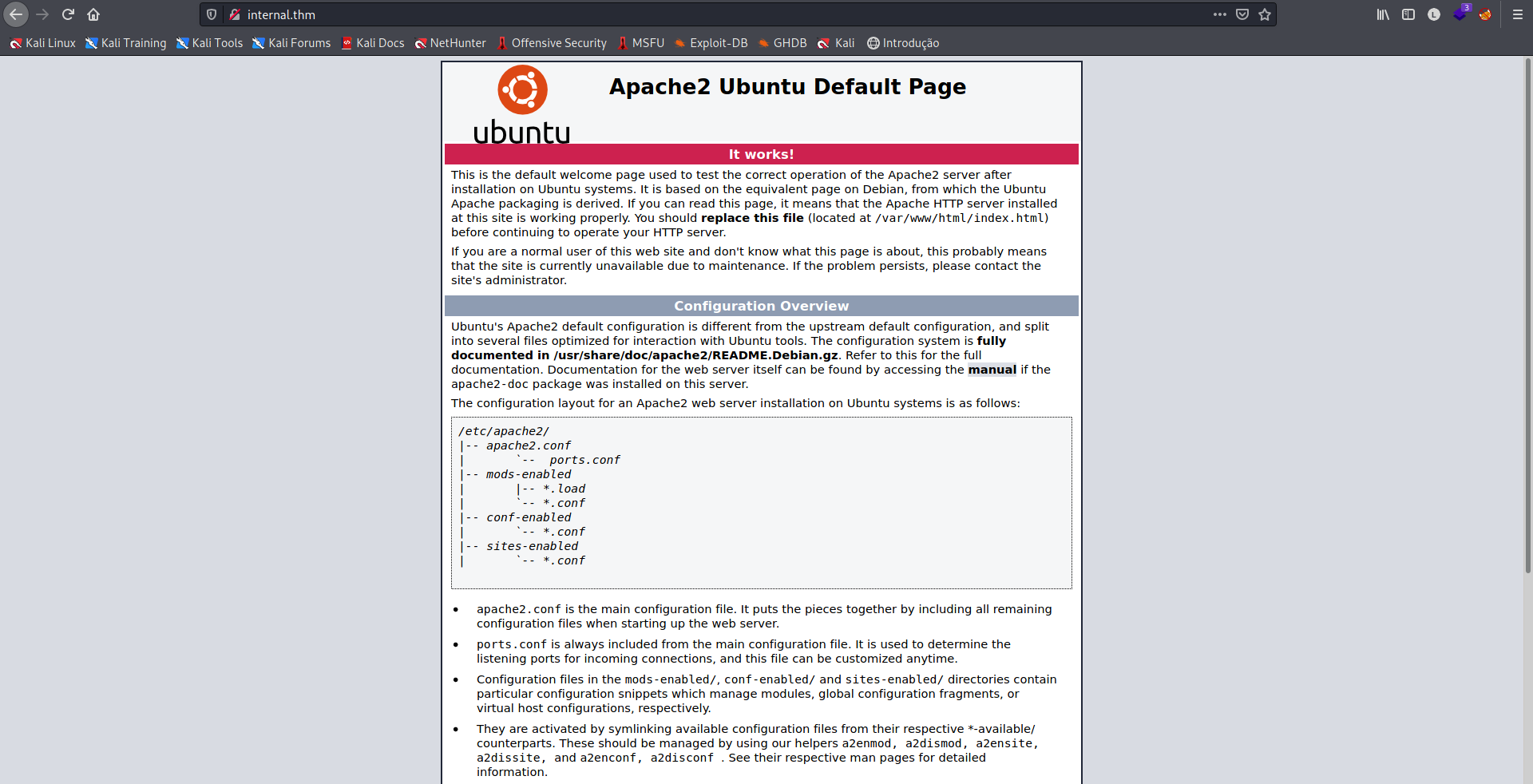 Na descrição do projeto, temos as instruções para adicionar internal.thm ao nosso /etc/hosts para refletirmos à pagina correta.