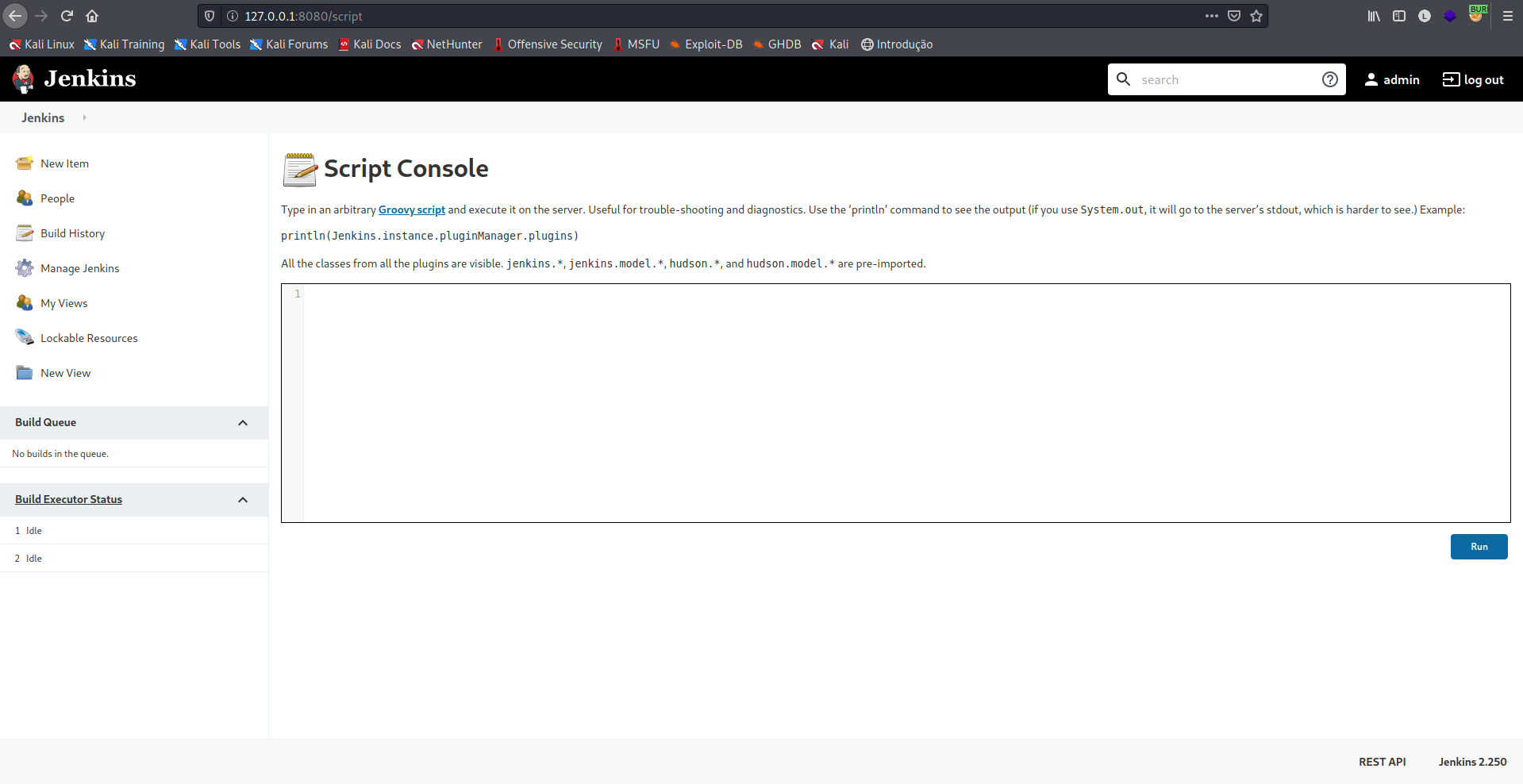 Ao efetuarmos o login na plataforma, podemos navegar até a opção Script Console, esta feature permite rodarmos javascript diretamente na plataforma, o que é perfeito, pois podemos tentar um reverse shell via JS.