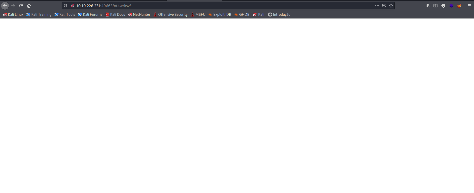 Fomos levados para uma página em branco, aparentemente até o momento a porta 49663 não nos deu muita coisa.